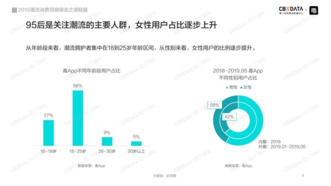 這與整個潮流文化消費的圈層十分契合,“90后”、“95后”是潮牌的主要消費群體,并且女性占比逐漸增加。